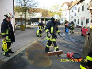Nach einem Verkehrsunfall mussten im Kreuzungsbereich Betriebsstoffen aufgenommen werden.